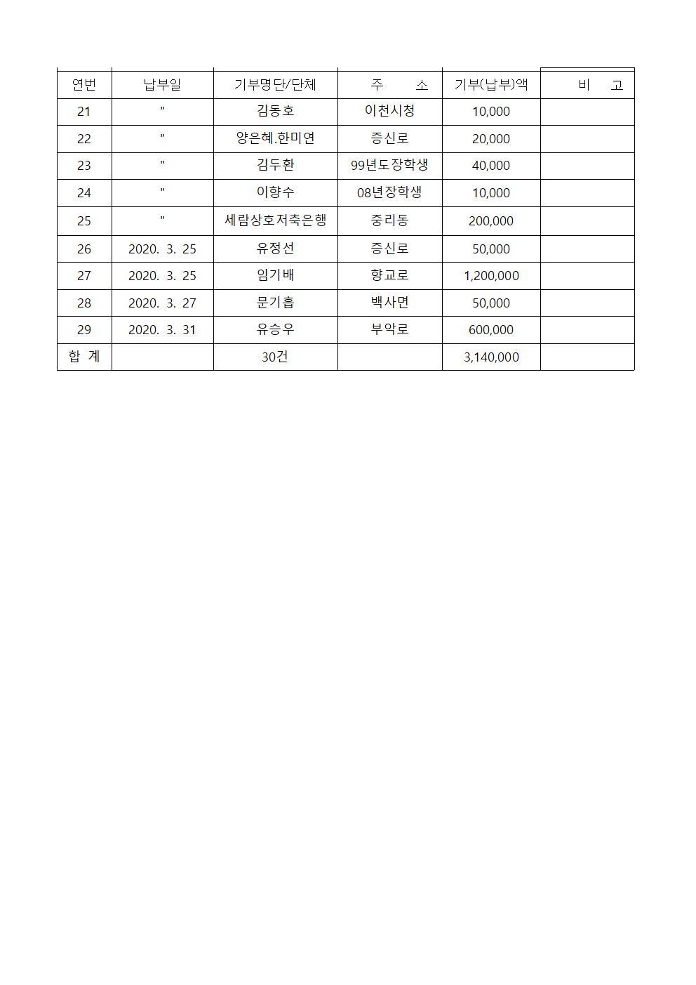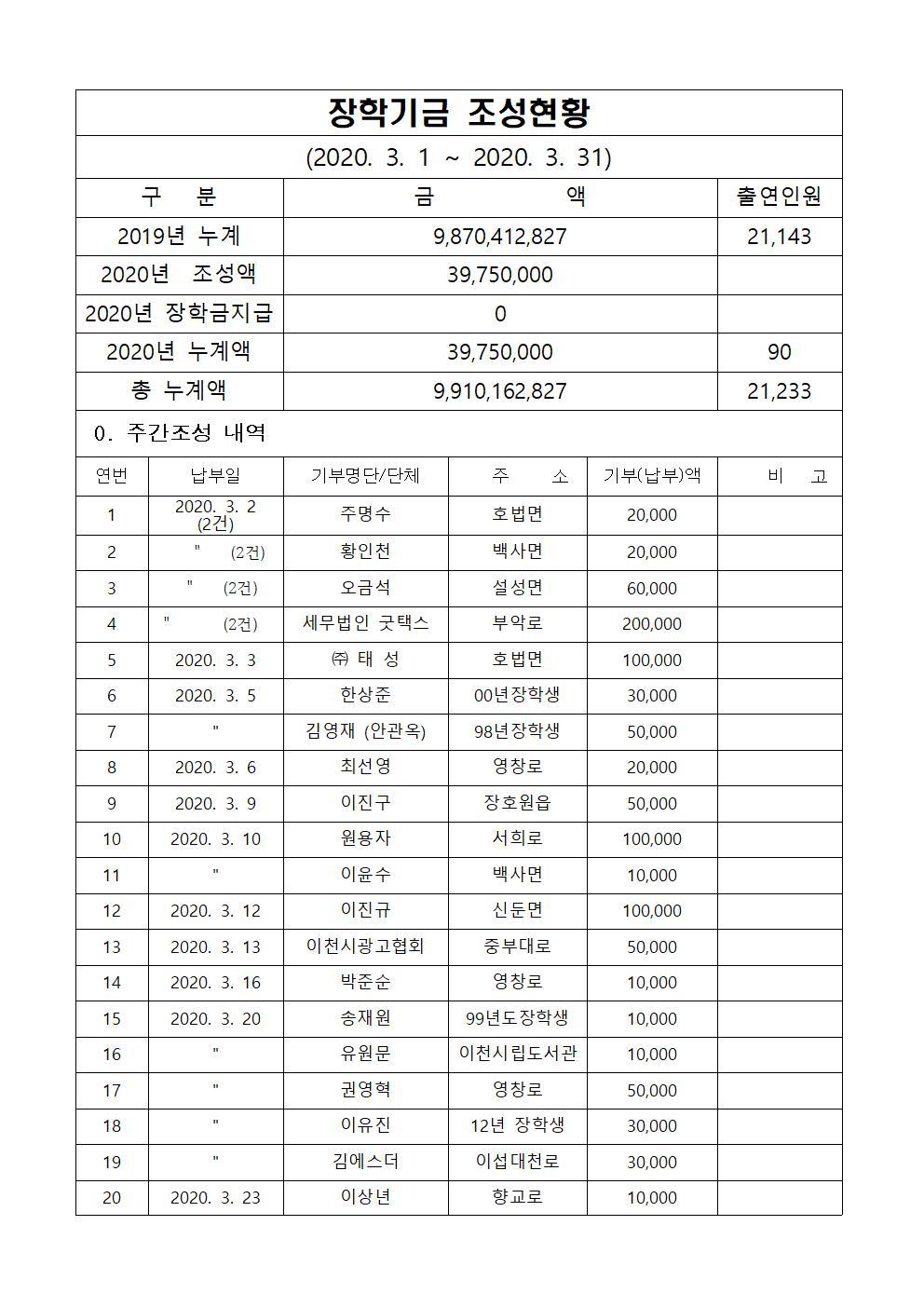 2020년 3월 장학기금 출연자 명단